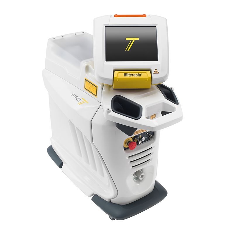 HIRO TT ist die Grenze in der Anwendung der Hilterapia®: Ein neuer therapeutischer Ansatz zur Behandlung von schmerzhaften Erkrankungen des Skelett-Muskel-Apparates, dessen Grundlagen auf dem Prinzip des Wärmeaustausches beruhen. HIRO TT vereint die gepulste Laserquelle Nd:YAG mit einem Kühlsystem (SmartCooler), das die Temperatur der Haut und der darunterliegenden Gewebeschichten verringert.
