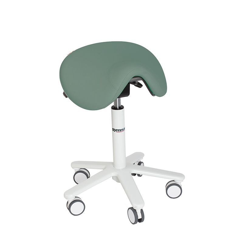 Gymna Sattelhocker mit Kunstlederbezug. Die perfekte Ergänzung zu den Behandlungsliegen der Gymna.PRO Serie.