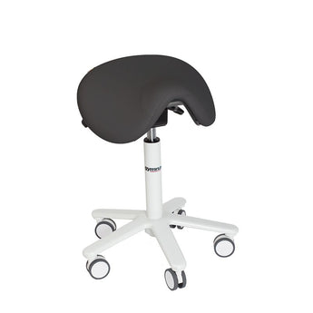 Gymna Sattelhocker mit Kunstlederbezug. Die perfekte Ergänzung zu den Behandlungsliegen der Gymna.PRO Serie.
